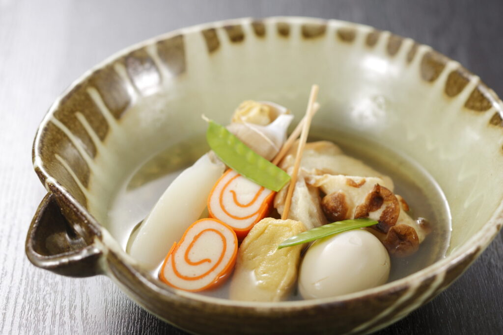 金沢名物のおでん。丁寧にひいた出汁で、車麩、赤巻、梅貝など独自のネタをお楽しみください。